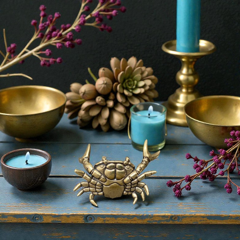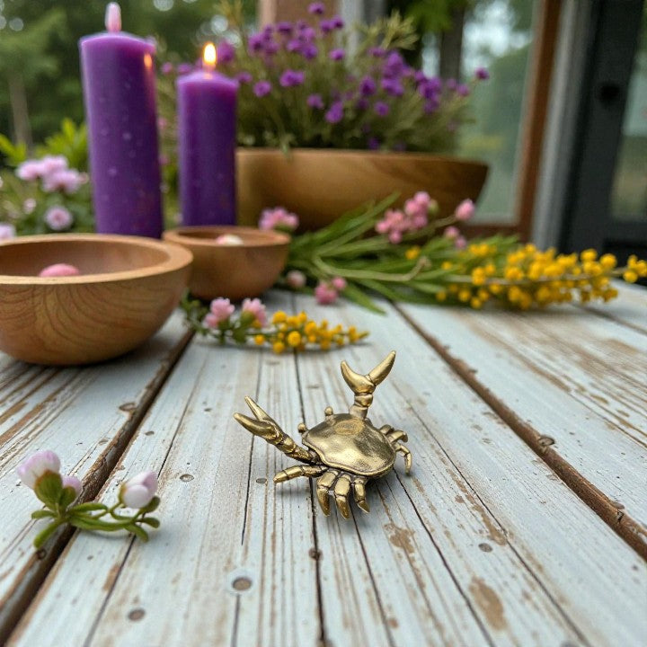 ⚓🌿 Brass is known for its grounding and stabilizing qualities, helping to anchor emotional awareness into calm, steady presence. 🧭🌊 Crab energy encourages adaptability, patience, and the ability to move sideways around obstacles rather than confronting them head-on. 🪷