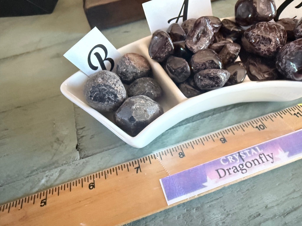💎🌹🐉🌙 These tumbled garnets come in assorted natural sizes and shapes, each piece uniquely formed by the Earth and carrying its own deep, rich energy. Garnet is commonly used in crystal grids and personal rituals to inspire balance between heart and will, enhance commitment to goals, and invite a warm, steady flow of protective and grounding energy into your space.