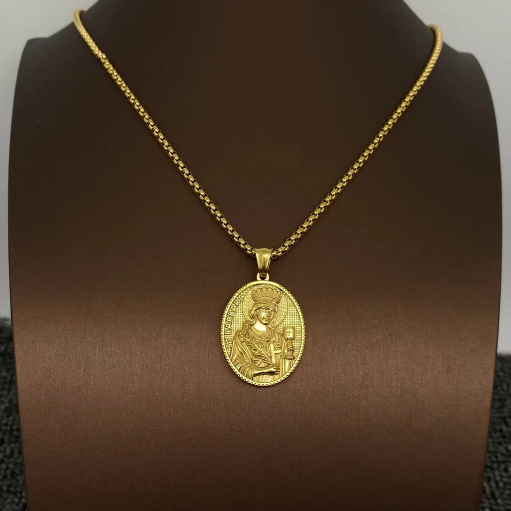 ✨ This Mary charm pendant with chain carries a timeless energy of grace, compassion, and divine protection. 🌙 Each pendant is crafted with 18k gold electroplated over stainless steel, offering durability and radiant shine.