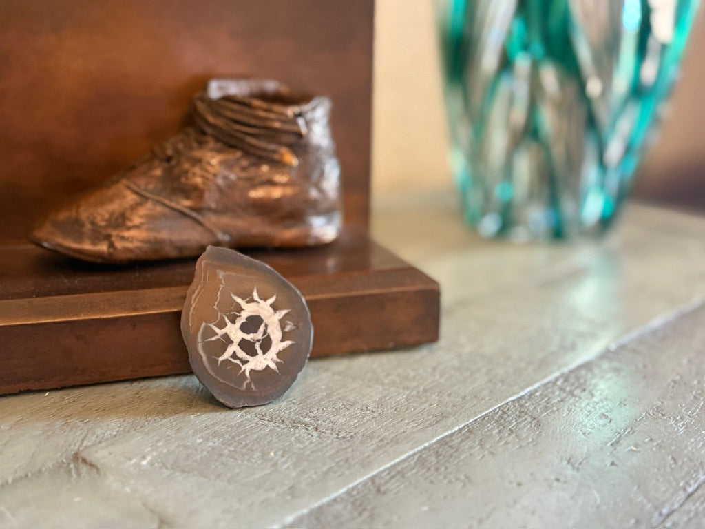 🌍 This Septarian Nodule slab is a captivating piece of Earth’s artistry, blending grounding energy with ancient wisdom. 🐚 Often called “Dragon Stone,” Septarian is believed to form a powerful bond with the natural world, carrying both the stabilizing energy of Aragonite and the nurturing vibration of Calcite.