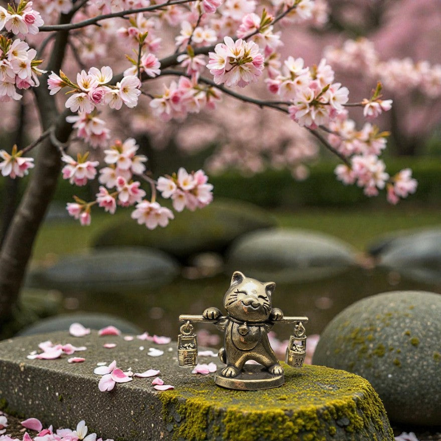 🔮🪙 In metaphysical traditions, the cat represents intuition, independence, and guardianship, while the presence of the carrying pole imagery reflects balance, steady effort, and the ability to gather blessings over time.