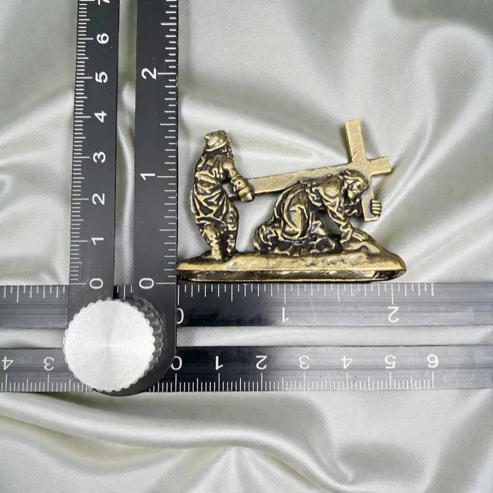 ✨ Standing as a reminder of sacrifice and spiritual devotion, this piece measures approximately 3 inches tall and carries a comforting weight of about 0.4 pounds, making it a meaningful addition to a prayer space, altar, or sacred corner in your home. 🕊️ Brass is often associated with strength, protection, and resilience, helping to anchor spiritual intention into the physical realm while reflecting warmth and enduring light.
