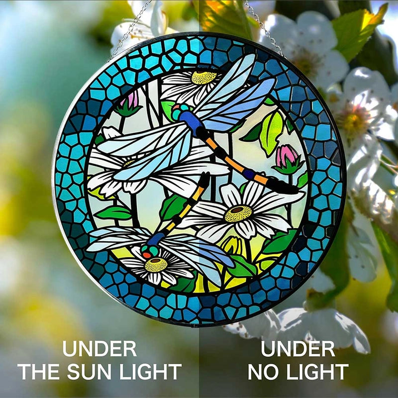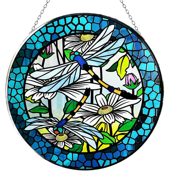 🧚✨ Measuring 12 inches in diameter, this mosaic dragonfly suncatcher brings gentle movement and luminous beauty into your home. 🧚♀️✨ The vibrant glass design catches and reflects the light with every shift, echoing the dragonfly’s symbolism of adaptability, transformation, and graceful change. 🧚✨ As sunlight dances across its surface, it creates a calming visual flow that feels both uplifting and grounding.