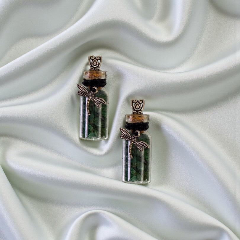 💚 Let the gentle flow of Green Aventurine merge with the transformative spirit of the Dragonfly in this enchanting 1.6-inch Gemstone Chip Bottle Pendant. 🐉 Green Aventurine, known as the Stone of Opportunity, radiates prosperity, optimism, and emotional renewal. 🌿 It balances the Heart Chakra, encouraging harmony and openness to new beginnings while easing anxiety and restoring inner calm. ✨