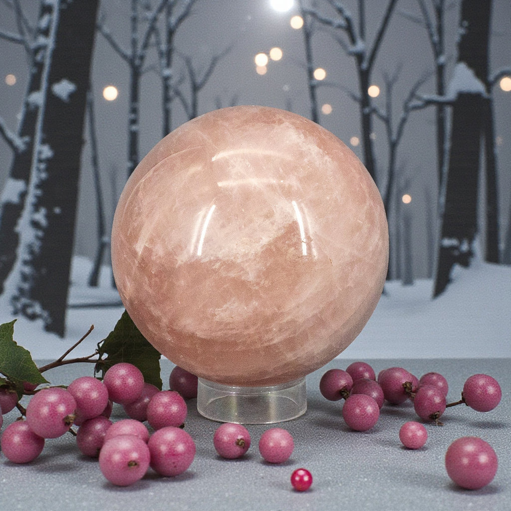 💗 This large sphere measures approximately 3.15 inches in diameter, this beautifully polished sphere carries the soft metaphysical essence rose quartz is known for, often linked with themes of emotional soothing and heart-centered calm.