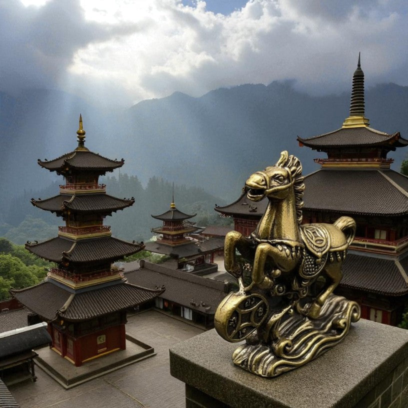 🐎A brass money horse with prosperity coins symbolizes momentum, victory, and the confident stride toward success, echoing the auspicious Chinese blessing “財源廣進,” or “may wealth flow from many sources.”
