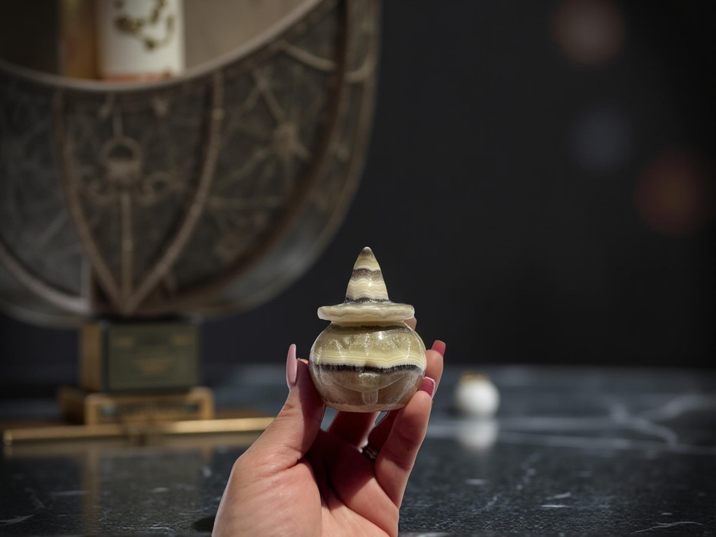 🎃 These zebra calcite jack o' lanterns are a playful fusion of festive charm and grounding energy. Carved from beautifully banded calcite, each piece showcases mesmerizing natural patterns that make them stand out in any crystal collection 🧡 Their whimsical jack o' lantern shape adds a touch of joy while still holding powerful metaphysical properties 🌟