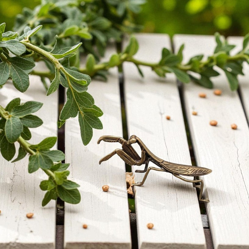 🦗Evoking focused stillness and perfect timing, the brass praying mantis symbolizes patience, precision, and mindful action. 🧘It channels meditative awareness, inviting you to pause, listen deeply, and move only when spirit truly nudges.