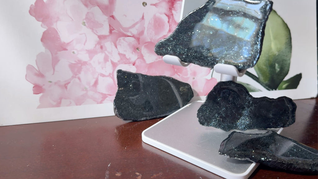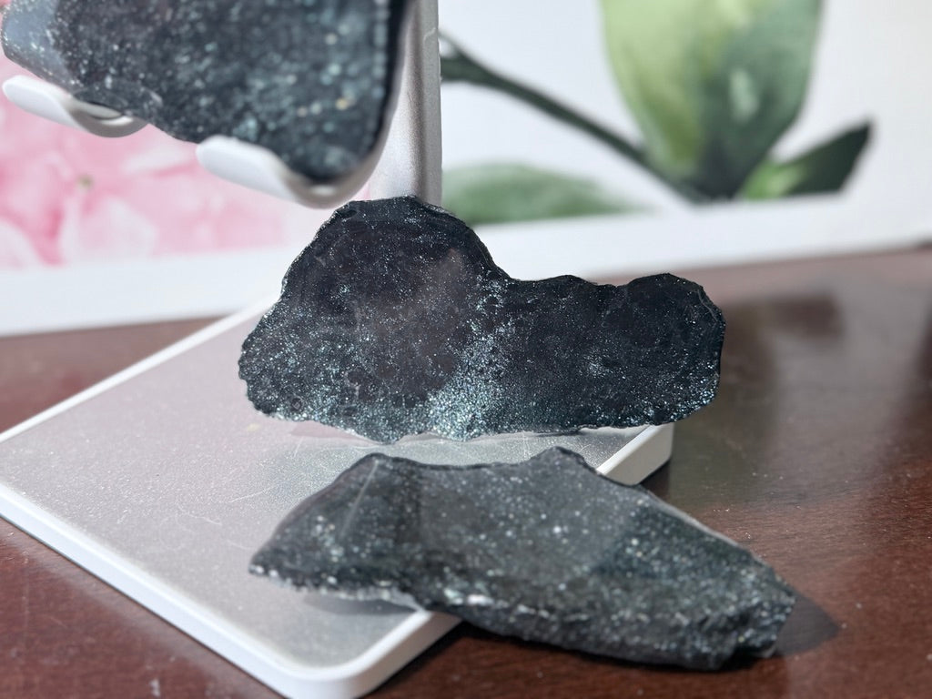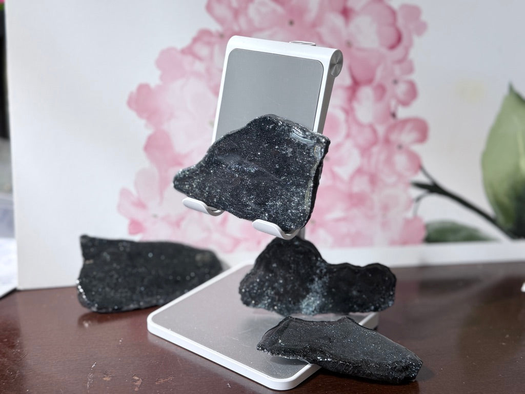 🌟 These glossy slabs radiate a harmonious fusion of grounding and high-vibrational energy, making them perfect for meditation, protection, and intention-setting 🔥