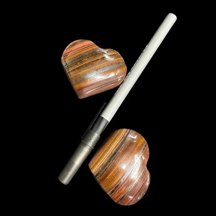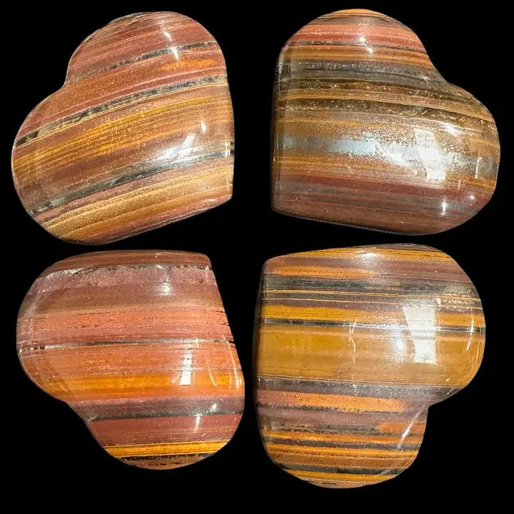 🌏 Sourced from Australia, each heart carries its own unique blend of grounding reds, metallic grays, and warm golden tones, making every piece one of a kind.