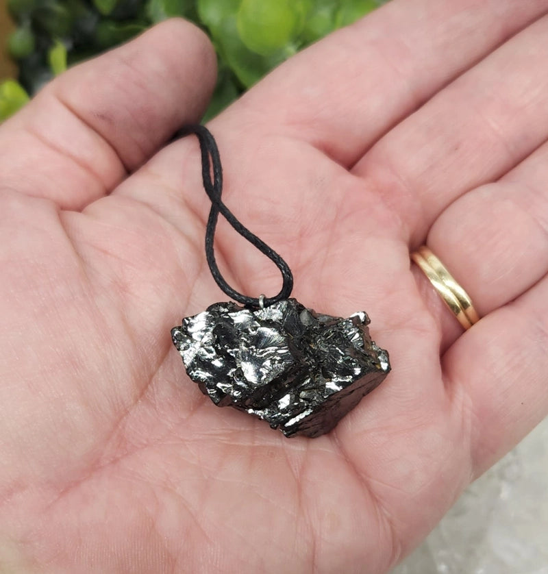 🖤 This Elite or Noble Shungite pendant carries the powerful grounding essence of ancient carbon born over two billion years ago. ⚡ Known for its purifying and protective qualities, it is said to shield against EMFs, negative energy, and emotional imbalance. 🌍 Each pendant has its own unique veins—these are natural formations, not cracks, that tell the story of the Earth’s transformation.