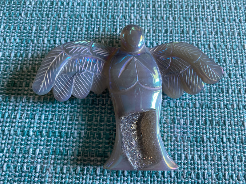 🌟 Angelic Agate Creations: These exquisite angels feature sparkly geode openings/ their micro-crystal sparkles enhancing their ethereal beauty. The wings bear lovely markings, and their detailed gowns exude elegance. Let’s explore the metaphysical magic of Agate—the stone that infuses these celestial beings with strength, harmony, and protection. 🌿