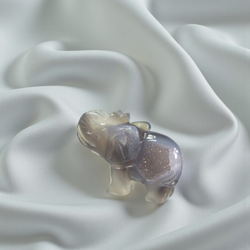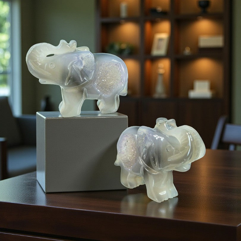 🐘 The Agate Drusy Elephant Figurine embodies strength, wisdom, and gentle perseverance. 🌙 Its sparkling surface glows with the grounding energy of Agate, harmonizing stability with spiritual insight.