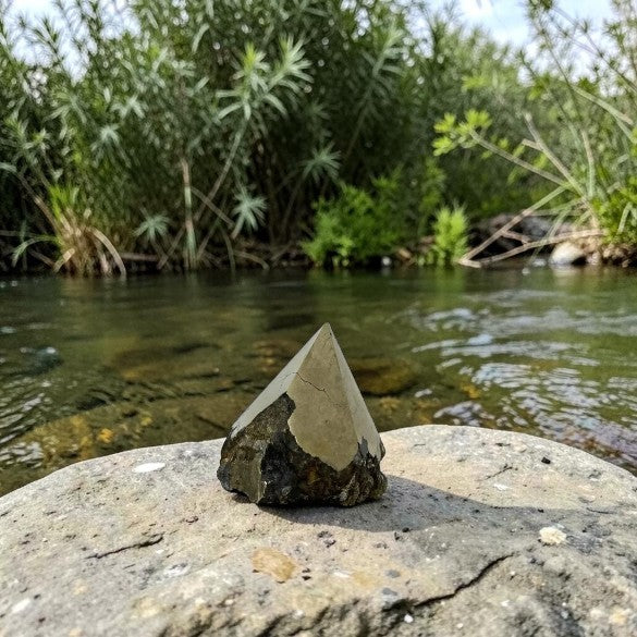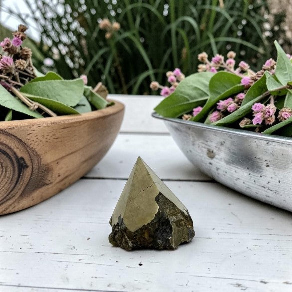 ✨🪨 This Pyrite piece, rough at the base and polished from midway to its pointed tip, measures approximately 2 inches and is beautifully sourced and crafted in India. 🌟💛 Known for its golden, metallic luster, Pyrite is often associated with confidence, protection, and focused intention, making it a striking addition to any mindful or sacred space.
