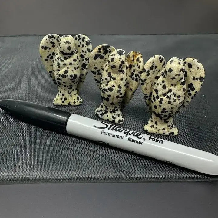 🧿 Many people also connect Dalmatian Jasper with balancing energies and clearing out negativity in a simple, practical way—more “steady support” than anything intense. 🪨 Every angel will vary naturally in spotting, tone, and patterning, so each one has its own personality. 🌙